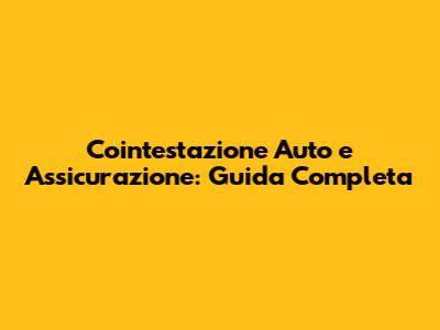 Cointestazione Auto E Assicurazione: Guida Completa