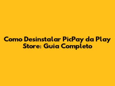 Como Desinstalar PicPay Da Play Store: Guia Completo