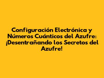 Azufre en Acción: ¿Cómo Influye su Configuración y Números Cuánticos?