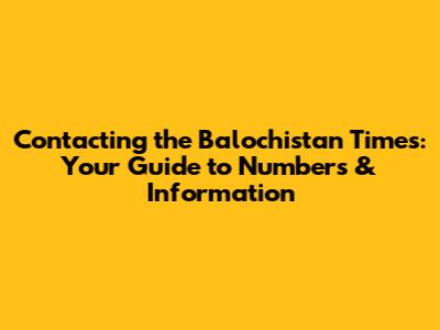 Finding the Balochistan Times Contact Number: The Basics