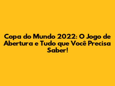 Copa Do Mundo 2022: O Jogo De Abertura E Tudo Que Você Precisa Saber!