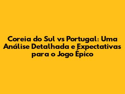 Coreia Do Sul Vs Portugal: Análise E Expectativas Do Jogo