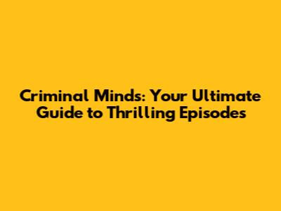 Criminal Minds: Your Ultimate Guide To Thrilling Episodes