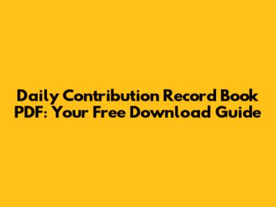 Daily Contribution Record Book PDF: Free Download Guide