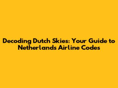 Decoding Dutch Skies: Your Guide To Netherlands Airline Codes
