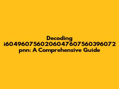 Understanding the Basics: What Could "i6049607560206047607560396072 pnn" Represent?