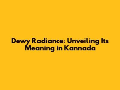 Dewy Radiance: What It Means In Kannada