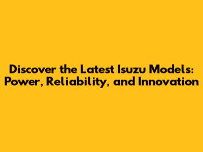 The Enduring Legacy and Future of Isuzu Vehicles