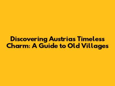Discovering Austria's Timeless Charm: A Guide To Old Villages
