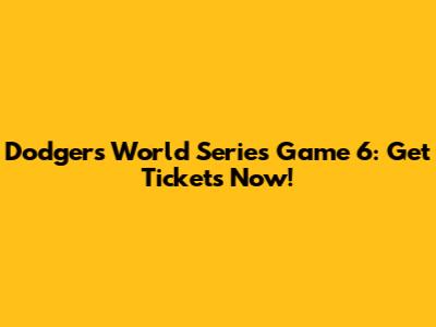Dodgers World Series Game 6: Get Tickets Now!