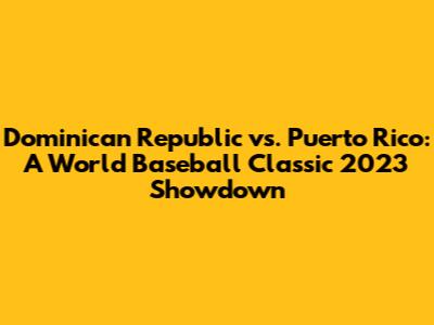 Dominican Republic Vs Puerto Rico: WBC 2023 Showdown