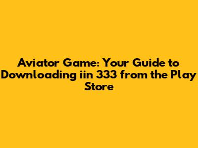 Download Aviator Game: Iin 333 On Play Store Guide