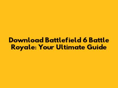 Download Battlefield 6 Battle Royale: A Comprehensive Guide