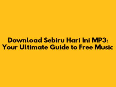 Hey music lovers! Are you searching for ways to get your hands on the Sebiru Hari Ini MP3? Well, you've come to the right place. In this guide, we'll dive deep into everything you need to know about downloading this amazing track for free, legally (of course!), and safely. We'll explore various platforms, discuss the legalities, and provide you with tips to ensure a smooth and enjoyable download experience. So, grab your headphones, get comfy, and let's jump right into the world of free music!