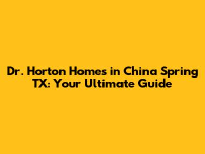 Dr. Horton Homes In China Spring TX: Your Ultimate Guide