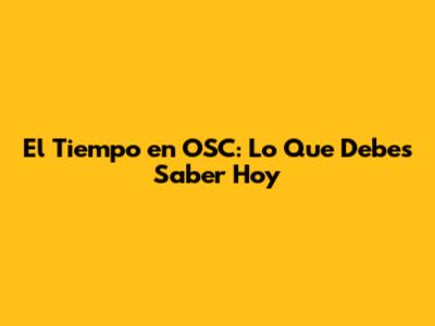 El Tiempo En OSC: Lo Que Debes Saber Hoy