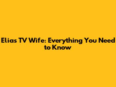 Elias TV Wife: Everything You Need To Know