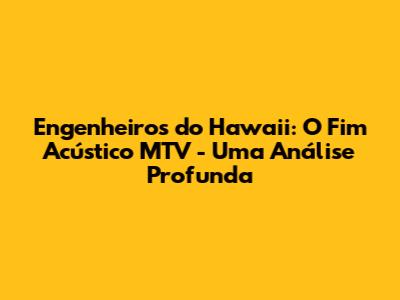 - Qual a importância do Acústico MTV para a carreira dos Engenheiros do Hawaii? O Acústico MTV representou um divisor de águas na carreira da banda, consolidando-a como um dos maiores nomes da música brasileira e apresentando suas músicas a um novo público.