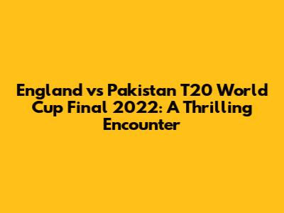 After England’s victory, the scenes were filled with jubilation. The English team celebrated with sheer delight, reflecting the culmination of their hard work and dedication. The victory was a moment of pride for England, their fans, and the entire cricketing community. The loss, however, was a hard pill to swallow for Pakistan, but their performance in the tournament was still a commendable achievement. The post-match interviews and discussions were filled with analyses and reflections. The commentators discussed the strategic brilliance of the winning team and the lessons learned by the losing side. The impact of the match extended beyond the cricket field, sparking discussions about the sport's spirit, teamwork, and the importance of resilience. For the fans, the aftermath was filled with emotions – the joy of victory for England supporters and the disappointment for Pakistani fans. However, the true spirit of the game was seen in the respect and sportsmanship displayed by both teams, even in the heat of the moment. The reflections on the match also highlighted the ever-evolving nature of cricket, with discussions on team strategies, individual performances, and the impact of the game on a global scale. The legacy of the match would live on, inspiring future generations of cricketers and fans alike, and cementing its place as an unforgettable chapter in the history of the sport.