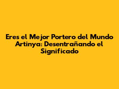 Eres El Mejor Portero Del Mundo Artinya: Un Análisis Detallado