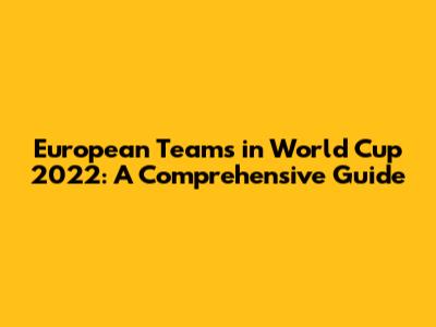 European Teams In World Cup 2022: A Comprehensive Guide