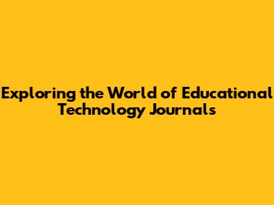 Exploring The World Of Educational Technology Journals