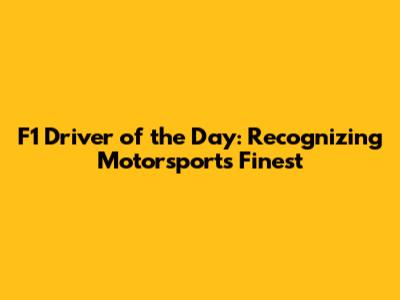 F1 Driver Of The Day: Celebrating Racing Excellence