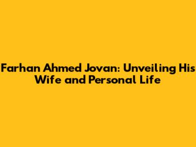 Farhan Ahmed Jovan: Unveiling His Wife And Personal Life