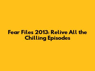 Where to Find Fear Files 2013 Episodes