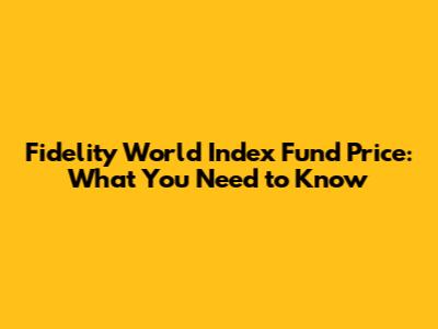 Fidelity World Index Fund Price: What You Need To Know
