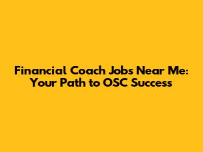 Financial Coach Jobs Near Me: Your Path To OSC Success