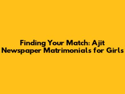 Finding Your Match: Ajit Newspaper Matrimonials For Girls