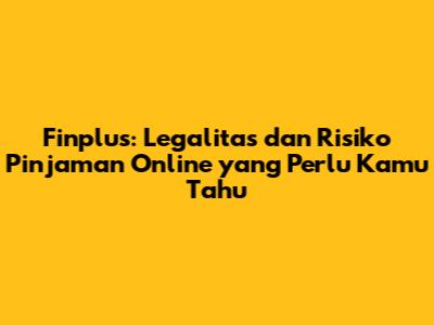 Finplus: Legalitas Dan Risiko Pinjaman Online Yang Perlu Kamu Tahu
