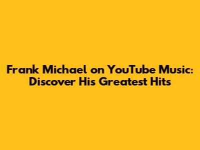 Frank Michael On YouTube Music: Discover His Greatest Hits