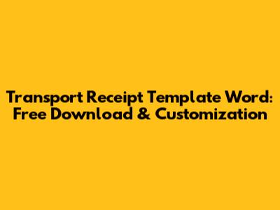 Free Transport Receipt Template Word: Download & Customize