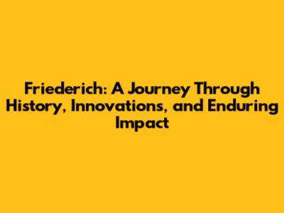 Friederich: History, Innovations, And Impact