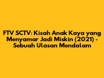 Guys, siapa di sini yang suka banget sama FTV SCTV? Pasti udah nggak asing lagi dong sama cerita-cerita yang seru, menghibur, dan kadang bikin baper. Nah, salah satu tema yang paling sering diangkat adalah cerita tentang anak orang kaya yang menyamar jadi miskin. FTV terbaru 2021 SCTV dengan tema ini memang selalu punya daya tarik tersendiri. Penasaran kenapa? Yuk, kita bedah tuntas!