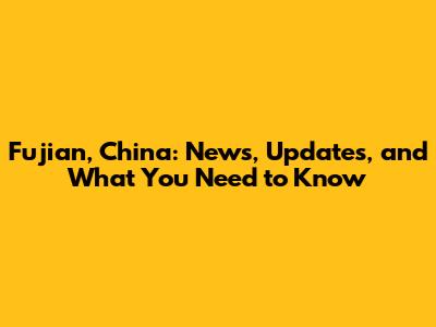 Fujian, China: News, Updates, And What You Need To Know