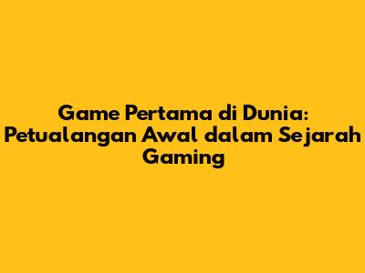 Game Pertama Di Dunia: Sejarah Dan Perkembangannya