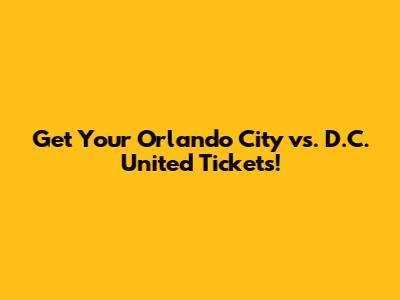 Get Your Orlando City Vs. D.C. United Tickets!