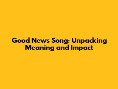 Good News Song: Unpacking Meaning And Impact