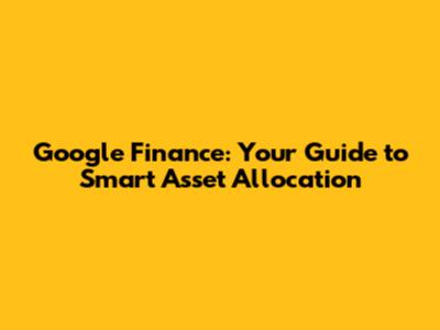 Google Finance: Your Guide To Smart Asset Allocation