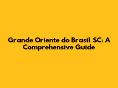 Grande Oriente Do Brasil SC: A Comprehensive Guide