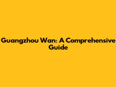 Guangzhou Wan: A Comprehensive Guide