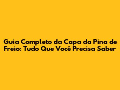Guia Completo Da Capa Da Pina De Freio: Tudo Que Você Precisa Saber