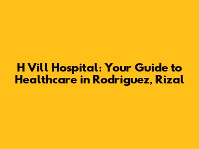 Hey guys! Navigating the healthcare landscape can sometimes feel like a real maze, right? Especially when you're looking for a reliable hospital that understands your needs. If you're in Rodriguez, Rizal, or find yourself needing medical attention in the area, then H Vill Hospital is a name you should know. This guide will walk you through everything you need to know about this hospital, helping you make informed decisions about your health and the health of your loved ones. We'll dive into what makes H Vill Hospital tick, from its services and specialties to its location and how to get in touch. So, grab a seat, and let's explore H Vill Hospital in Rodriguez, Rizal, together!