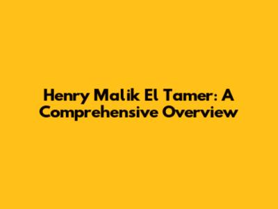 Henry Malik El Tamer: A Comprehensive Overview