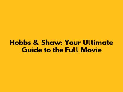 Hey guys! If you're here, chances are you're itching to dive into the high-octane world of Hobbs & Shaw. You're in the right place! We're going to break down everything you need to know about this action-packed flick, from where to watch it, to what makes it such a blast. Forget about endless searching – consider this your one-stop shop for all things Hobbs & Shaw. We'll cover everything, from the basic plot and cast to the best ways to enjoy the full movie experience. Get ready for a wild ride!