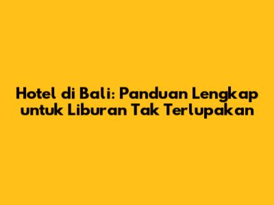Hotel Di Bali: Panduan Lengkap Untuk Liburan Tak Terlupakan