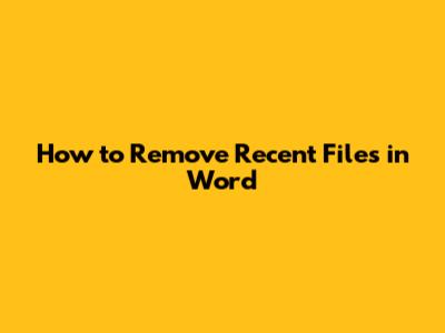 How To Remove Recent Files In Word